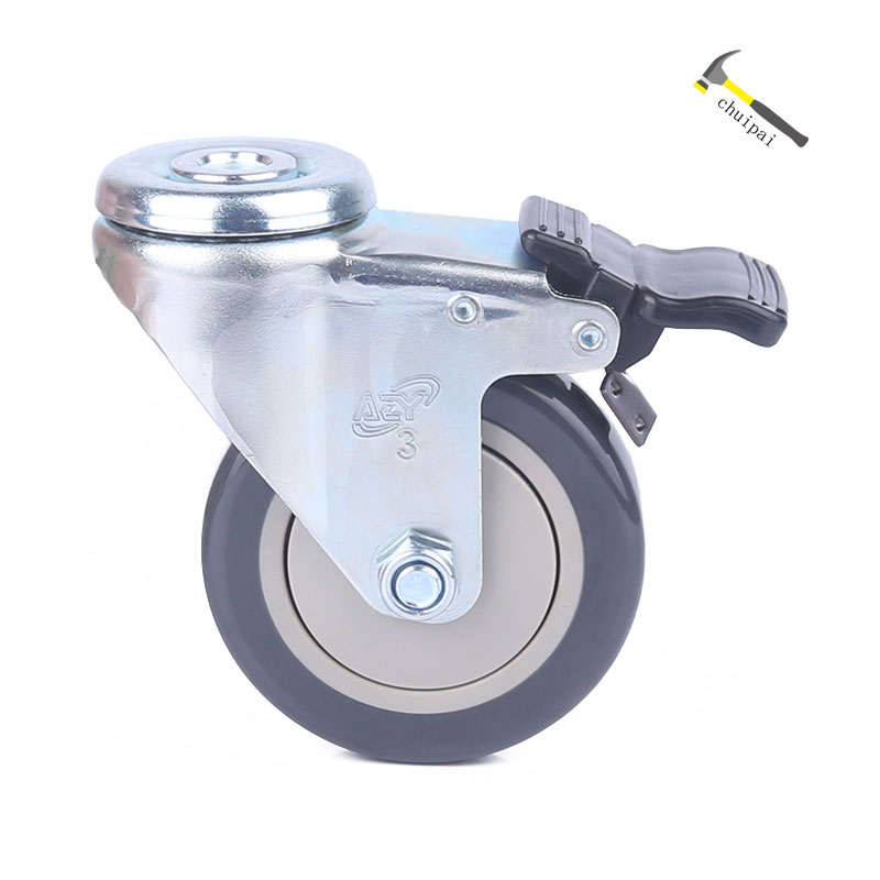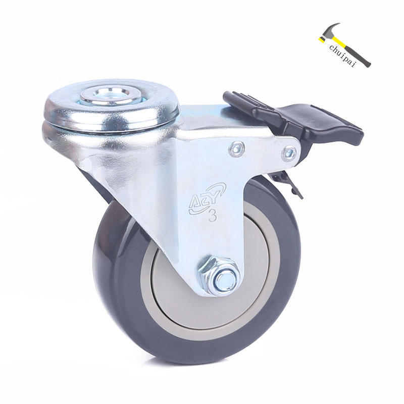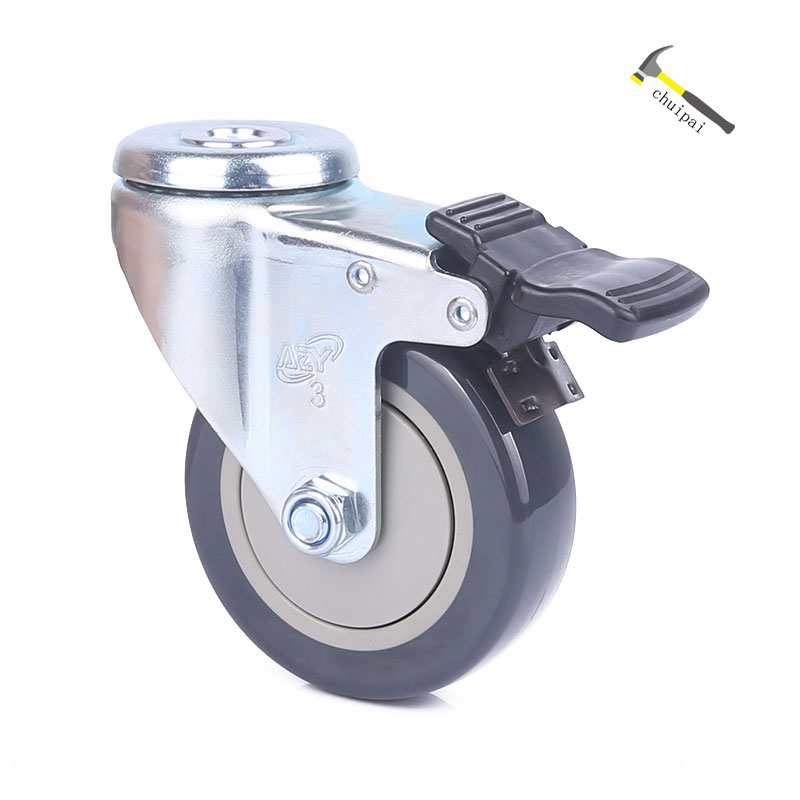 3寸轻型空颈TPU万向带刹车脚轮